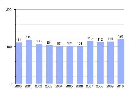 Gráfica de evolución demográfica de Rioseco de Soria (localidad) entre 2000 y 2010 |