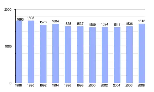 1900 | 1910 | 1920 | 1930 | 1940 | 1950 | 1960 | 1970 | 1980 | 1990 | 2000 | 2007 |