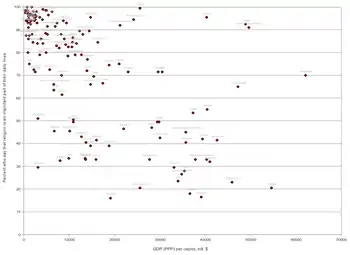 Según algunas teoría el PIB de los países generalmente está correlacionado negativamente con su religiosidad; es decir, a más rica una población, menos religiosa es.[1]