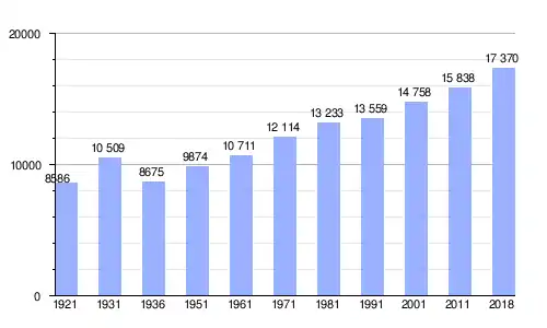 Gráfica de evolución demográfica de Riva del Garda entre 1921 y 2018 |