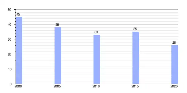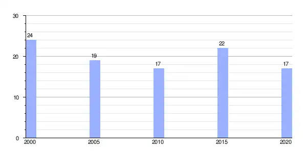 Gráfica de evolución demográfica de Riveira (aldea) entre 2000 y 2020 |