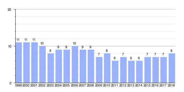 Gráfica de evolución demográfica de Rivela entre 1999 y 2018 |