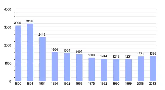 Gráfica de evolución demográfica de Rives-Dervoises entre 1800 y 2013 |
