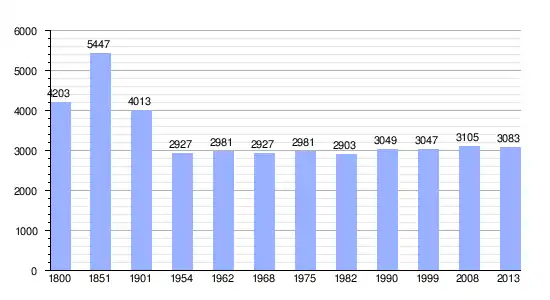 Gráfica de evolución demográfica de Rives-d'Andaine entre 1800 y 2013 |