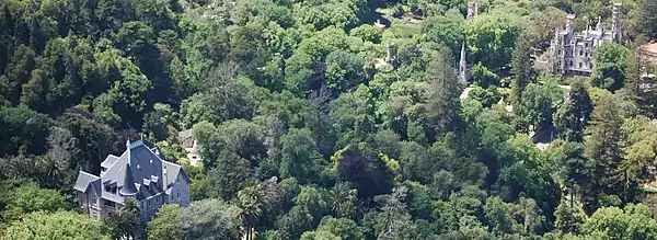 Las montañas de Sintra se consideran moderadamente húmedas, pero las precipitaciones en las montañas son más altas que en las áreas circundantes. La posición de Sintra en el paisaje natural de la Sierra de Sintra está influenciada por la existencia de un microclima.[28] [29] Debido a su microclima, la zona ha desarrollado un follaje denso con una rica diversidad botánica.