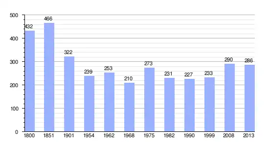 Los datos demográficos contemplados en este gráfico de la comuna de Robert-Magny[5] se han cogido de 1800 a 1999 de la página francesa EHESS/Cassini, y los demás datos de la página del INSEE.[6]