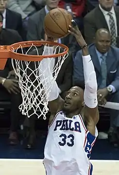 ![]() Covington con los Sixers en 2018. | |||
