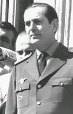 ![]() Moya en el balcón de la Casa Rosada, 3 de abril de 1982. | ||