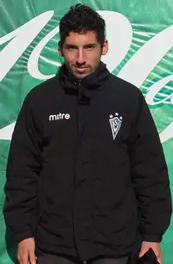 ![]() Roberto con la parka de Santiago Wanderers. | ||