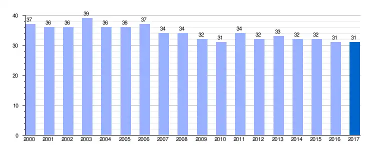 Gráfica de evolución demográfica de Robledo de Babia entre 2000 y 2017 |