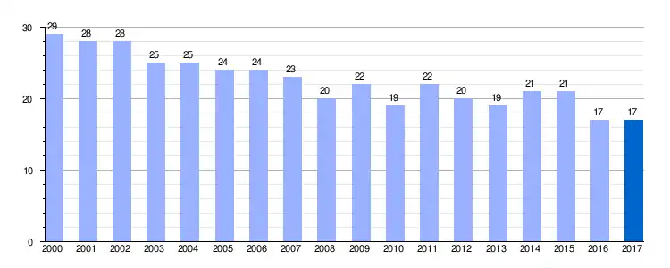 Gráfica de evolución demográfica de Robledo de la Guzpeña entre 2000 y 2017 |