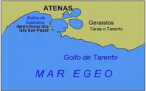 En ese lugar, según la Odisea, pereció Áyax el Menor, hijo de Oileo, rey de Lócride.[2] La leyenda dice que el cuerpo sin vida de Áyax y el tridente con el que lo había atravesado Poseidón se convirtieron en la roca más alta del promontorio.