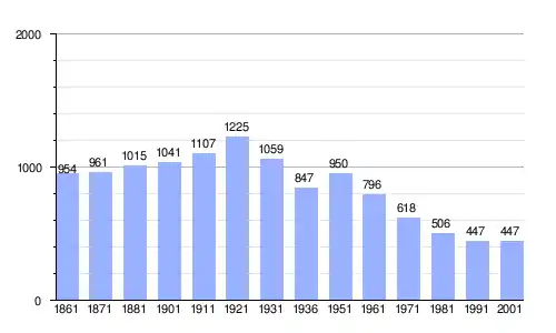 Gráfica de evolución demográfica de Rocca di Cambio entre 1861 y 2001 |