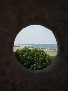 Encerrada dentro de las murallas de la fortaleza, su función, a diferencia de la Torre Este, era defender el frente noreste en caso de que los atacantes rompieran las murallas y se extendieran por el castillo. Hay tres troneras a nivel del suelo, mientras que la bóveda que cubría la cámara ya no existe.