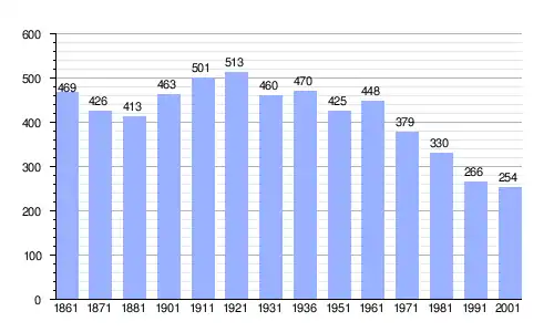 Gráfica de evolución demográfica de Roccafiorita entre 1861 y 2001 |