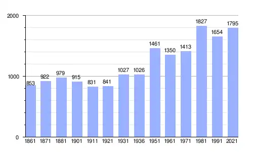 Gráfica de evolución demográfica de Roccaforzata entre 1861 y 2021 |