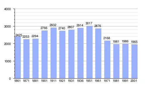 Gráfica de evolución demográfica de Roccamontepiano entre 1861 y 2001 |