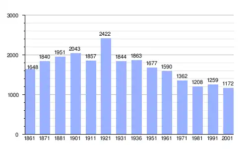 Gráfica de evolución demográfica de Roccavaldina entre 1861 y 2001 |