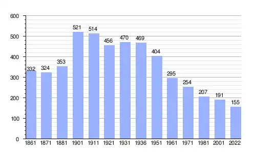 Gráfica de evolución demográfica de Rocchetta Belbo entre 1861 y 2022 |