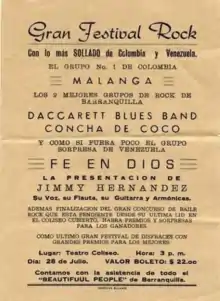 El nuevo ritmo fue ampliamente difundido, abriendo el camino para la organización de los primeros conjuntos rocanroleros, conciertos y concursos de baile, destacándose la presentación que en 1962 hizo Bill Haley en el Teatro Colombia (actual Teatro Jorge Eliécer Gaitán).[2]