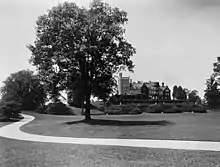 Una entrada tenía una puerta de metal batiente sobre dos postes de granito, junto a una puerta de entrada relativamente sin decoración. El viaje desde la puerta hasta la casa llevó al visitante a lo largo de un camino sinuoso y ligeramente ascendente, a través de un bosque de olmos, al este de Rockwood Hall.