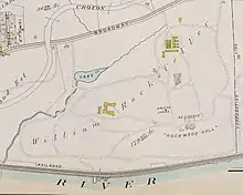La propiedad está ubicada en la ciudad de Mount Pleasant, en el condado de Westchester, Nueva York. Se encuentra al oeste de la ruta estadounidense 9, entonces conocida como Broadway, a 3 millas al norte de Tarrytown y a 1,5 millas al sur de Scarborough. Estaba a menos de una milla del Sleepy Hollow Country Club. La propiedad limita con las vías del ferrocarril, anteriormente del Ferrocarril Central de Nueva York y hoy como la Línea Hudson de Metro-North. La propiedad también bordea el río Hudson por 3/4 de milla (1,2 km) . Los prados y jardines ocupaban 26 acres (10,5 ha) de la propiedad. Vallas de hierro corrugado sobre hormigón cercado de parte de la propiedad. Durante la propiedad de William Rockefeller, la propiedad estaba dentro del distrito fiscal de Tarrytown; la propiedad actual del parque se extiende casi todo el frente del río desde Sleepy Hollow hasta Briarcliff Manor, y desde el río Hudson hasta la Ruta 9.