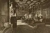 La sala de música, junto a la sala de recepción, estaba teñida de un delicado esmalte verde. Las paredes tenían paneles de madera satinada, el techo era de papel maché y la chimenea era de mármol piriano, con una pequeña ventana cuadrada arriba. La sala estaba iluminada por 250 lámparas eléctricas esparcidas por toda la sala en "descuido artístico". La biblioteca, en la esquina sureste de la casa, usó un revestimiento de madera de nogal circasiano hasta el techo. La chimenea era de mármol levantino negro. Sillas de roble tallado estaban por toda la habitación. La biblioteca fue descrita como oscura y sombría en oposición a la sala de música luminosa y aireada, un ejemplo de cómo casi todas las habitaciones de la casa eran distintas de las contiguas. El comedor y la biblioteca daban a la terraza y al porche sur. El comedor era de caoba, revestido casi hasta el techo. Las paredes estaban cubiertas de pinturas al óleo. La chimenea era de mármol de Siena y un aparador de caoba. La sala de billar, en la esquina suroeste, tenía un techo abovedado con frescos y una chimenea de ónix de tonos claros. La sala de desayunos, en la esquina noreste, tenía paredes revestidas de madera de goma, con un espacio entre el revestimiento y el techo con frases inscritas. El techo era azul celeste, con emblemas del zodíaco en oro. El estudio cercano tenía paredes y techo de abedul rojo y un friso pintado, junto con una chimenea de azulejos amarillos.