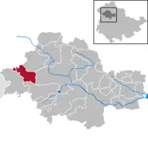 Se encuentra ubicado al norte de la ciudad de Eisenach, al noroeste de Erfurt, la capital del estado.