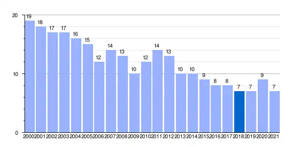 Gráfica de evolución demográfica de Rodrigatos de las Regueras[2] entre 2000 y 2021 |