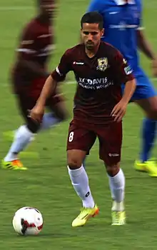 ![]() López conduce el balón con el Sacramento | ||