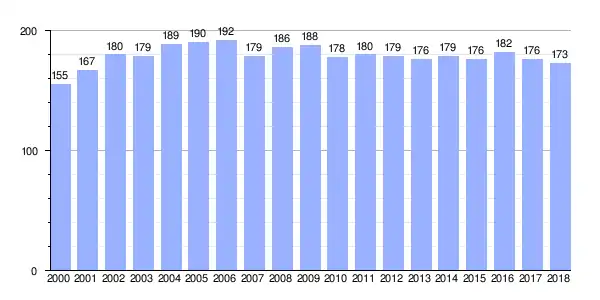 Gráfica de evolución demográfica de Rois (parroquia) entre 2000 y 2018 |