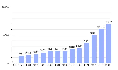 Gráfica de evolución demográfica de Romano d'Ezzelino entre 1861 y 2001 |