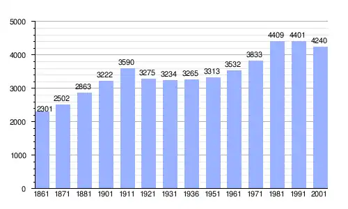 Gráfica de evolución demográfica de Romentino entre 1861 y 2001 |