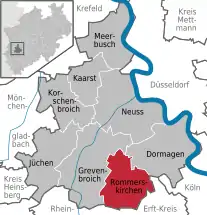 ![]() ![]() Rommerskirchen Ubicación en el estado de Renania del Norte-Westfalia | ||||