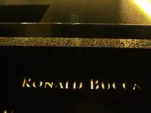 ![]() El nombre de Bucca se encuentra en el panel S-14 de la piscina sur del National September 11 Memorial & Museum, junto con el nombre de otros bomberos. | ||