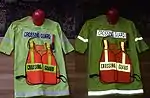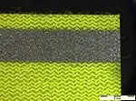 - Dos fotos de ropa en luz normal, y cuando una fuente de luz se refleja en las bandas de alta visibilidad
