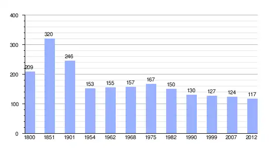 Gráfica de evolución demográfica de Roquiague entre 1800 y 2012 |