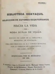 - Pérez Pimentel, Rodolfo: Diccionario Biográfico Ecuador, tomo 4 - Rosa Borja de Ycaza Archivado el 6 de septiembre de 2014 en Wayback Machine.