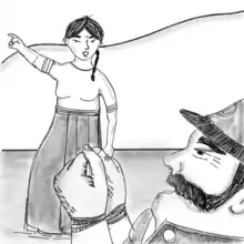 ![]() Representación artística de Rosa Giorgana apresando al general Reguera. | ||