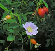 Los escaramujos se utilizaron durante la Segunda Guerra Mundial por su alto contenido en vitaminas, mayormente vitamina C. Se secan para el té, o para su uso en gelatinas y salsas. Los Cahuilla comían las yemas de la rosa crudas o empapadas en agua. Un té también se hizo a partir de las raíces, y se utiliza para los resfriados. Debido a que los escaramujos permanecen en la planta durante todo el invierno, proporcionan alimento para la fauna durante la época cuando el forraje es escaso.[4]