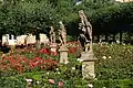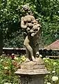 Las esculturas diseminadas en la rosaleda de estudio de la mitología antigua son obras de Ferdinand Tietz (años formativos 1760 a 1761).