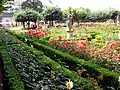 En la zona delimitada por los árboles se haya la rosaleda que en la actualidad alberga unos 4.500 rosales y diversas variedades de rosa que se presentan en todas las gradaciones de tonos de color y aroma.