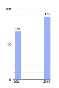 Gráfica de evolución demográfica de Rosario del Saladillo entre 2001 y 2010 |