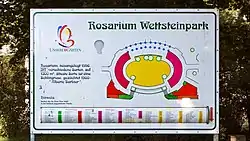 La rosaleda se encuentra en el interior del gran parque, Wettsteinpark de 34 000 m² creado en 1934, que está situado en uno de los canales aliviaderos de las inundaciones del río Danubio.