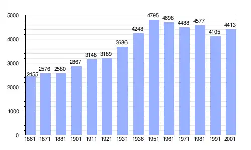 Gráfica de evolución demográfica de Rose entre 1861 y 2001 |