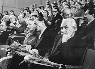 ![]() Entrega del premio Heinrich Mann en el año 1958. De der. a izq.: Hans Grundig, Herbert Jobst y Rosemarie Schuder. | ||