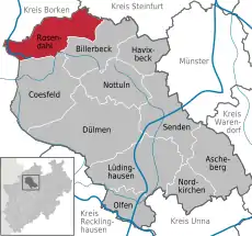 ![]() ![]() Rosendahl Ubicación en el estado de Renania del Norte-Westfalia | ||||