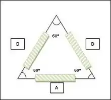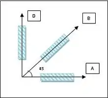 Una roseta se dice que es rectangular cuando sus galgas están arregladas con una diferencia de 45° entre sí, por lo que una roseta se encontrará en posición horizontal, una en posición vertical y otra a un ángulo de 45°.