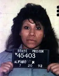 Alfaro fue la primera mujer condenada a muerte en la cámara de gas, y en el momento de la sentencia fue la tercera mujer en el corredor de la muerte en California.