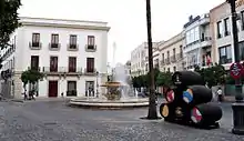 El espacio público tomó forma de rotonda a raíz de servir como centro de comunicaciones entre vías de importancia como la calle Larga y la calle Bizcocheros, acentuado por la fuente situada en el centro.